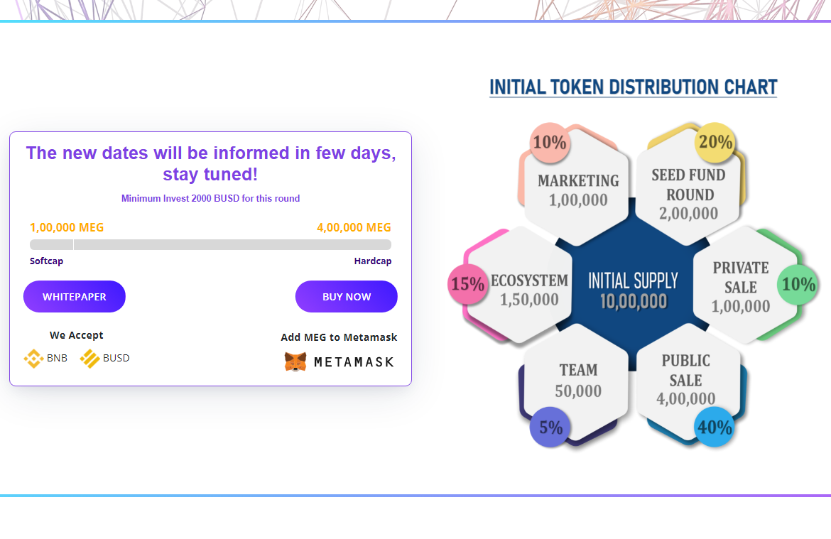 При этом, первоначальное предложение токенов MEG составляет лишь 1000000 токенов. Официальная продажа токенов со стороны проекта MegaBsc, состоит из трех этапов, а цена одного токена MEG, составляет 2 доллара.
