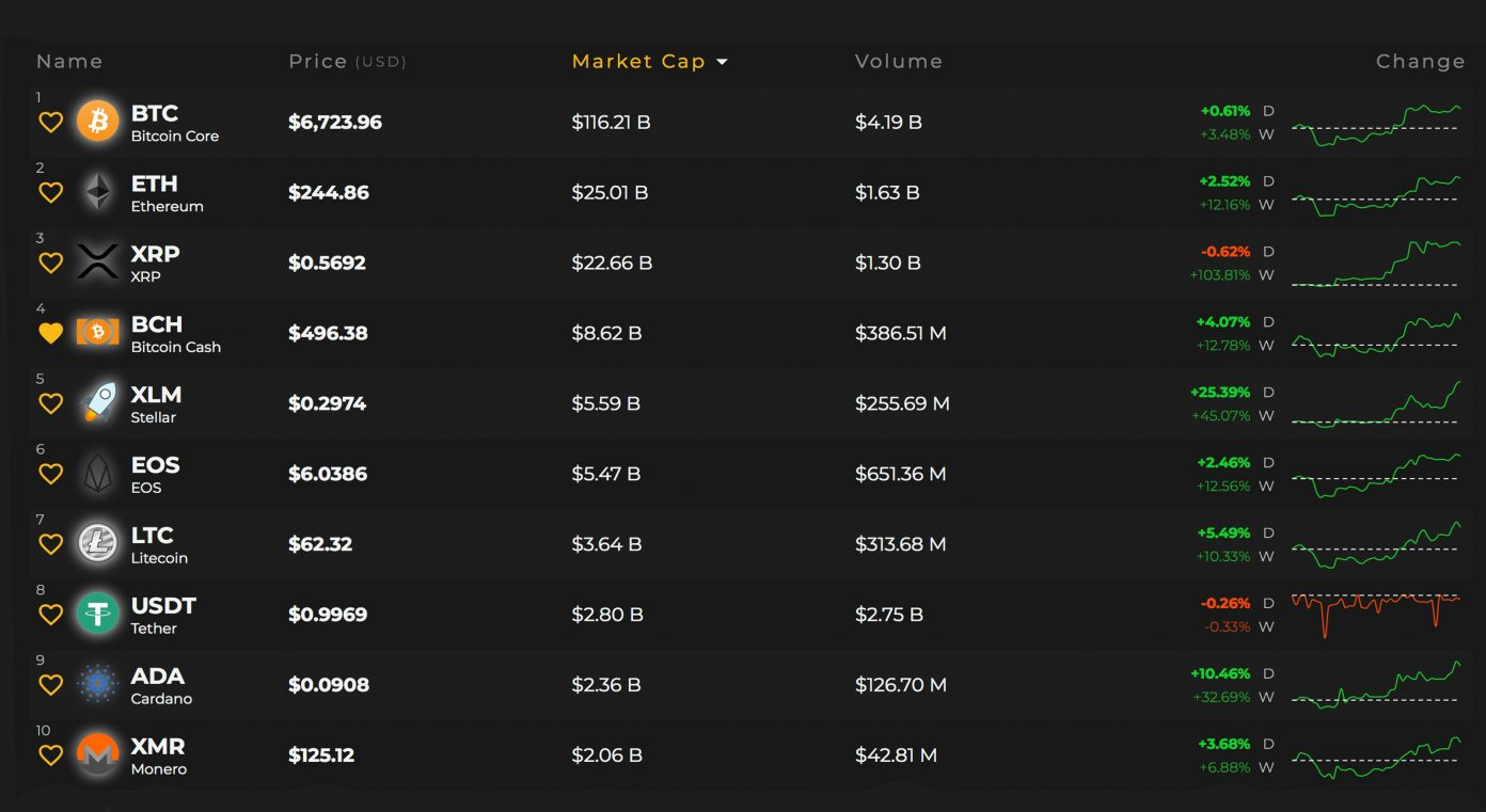 Bitcoin core (BTC) markets over the last week are up 3.4 percent (US$6,723) and the cryptocurrency’s market valuation is around $116.2 billion today. Ethereum (ETH) markets shot up pretty good this week as one ETH ($244) has gained 12 percent. Of course, the cryptocurrency crowd witnessed the 103 percent increase ripple (XRP) markets experienced this week. One XRP is valued at $0.56 this Sunday and the coin’s market capitalization is about $22.5 billion. Bitcoin cash (BCH) markets are up 13 percent per BCH ($492) over the last seven days and the currency’s market valuation is about $8.5 billion this weekend. Lastly, EOS is priced at $5.45 and the EOS market performance over the last weeks is up 12.2 percent.