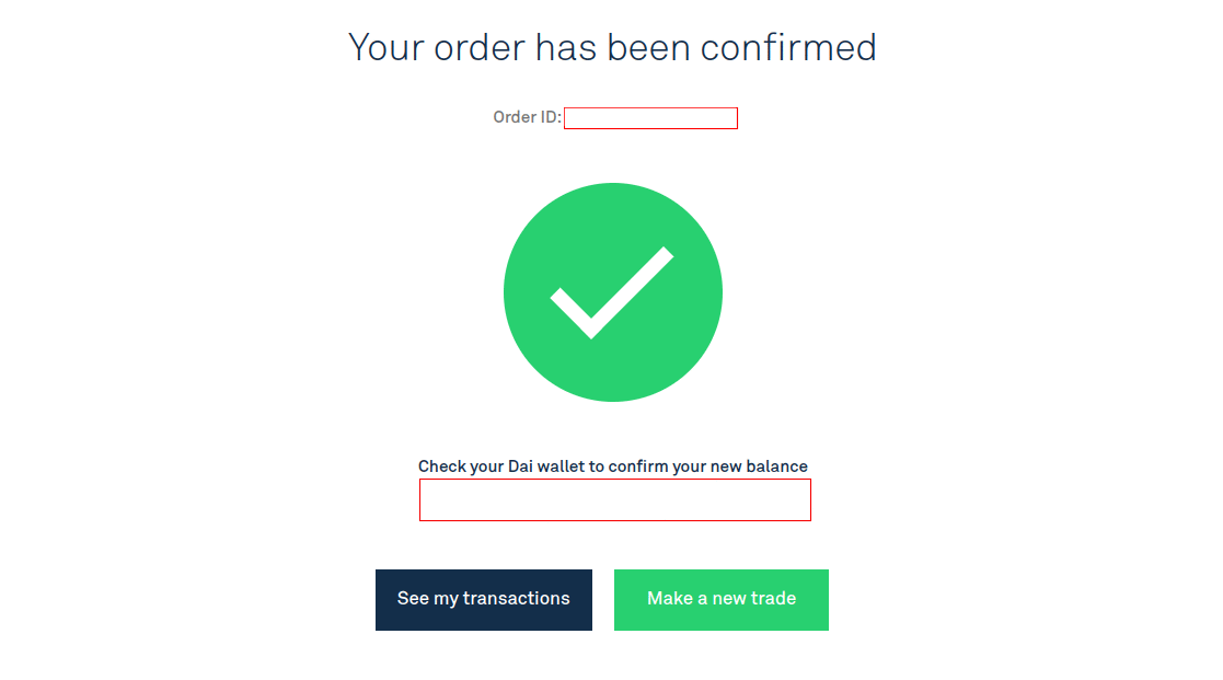 That's it! After a few minutes you'll see the confirmation screen and your DAI will be in your wallet. It's pretty straight forward.