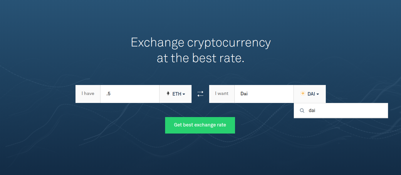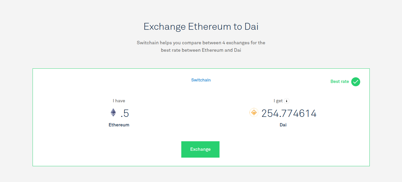 I personally usually start with Switchain so in this case I will be exchanging 0.5 ETH for DAI. Here's where it starts.
