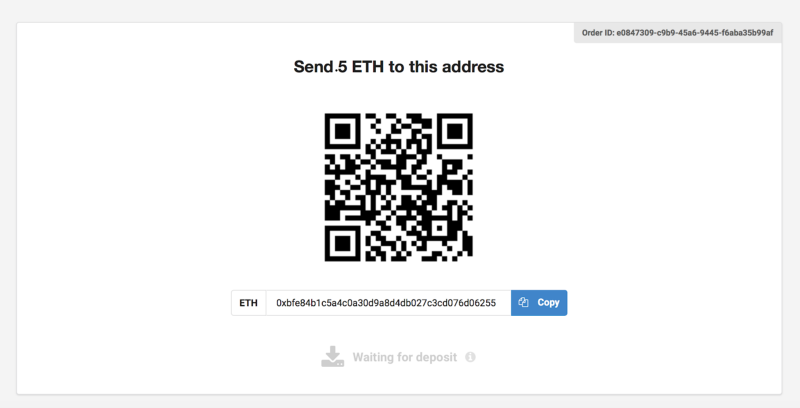 After you send the correct amount of ETH (the one you defined in Step 1) to the displayed address (see image below for reference), your DAI will shortly be deposited to your wallet.