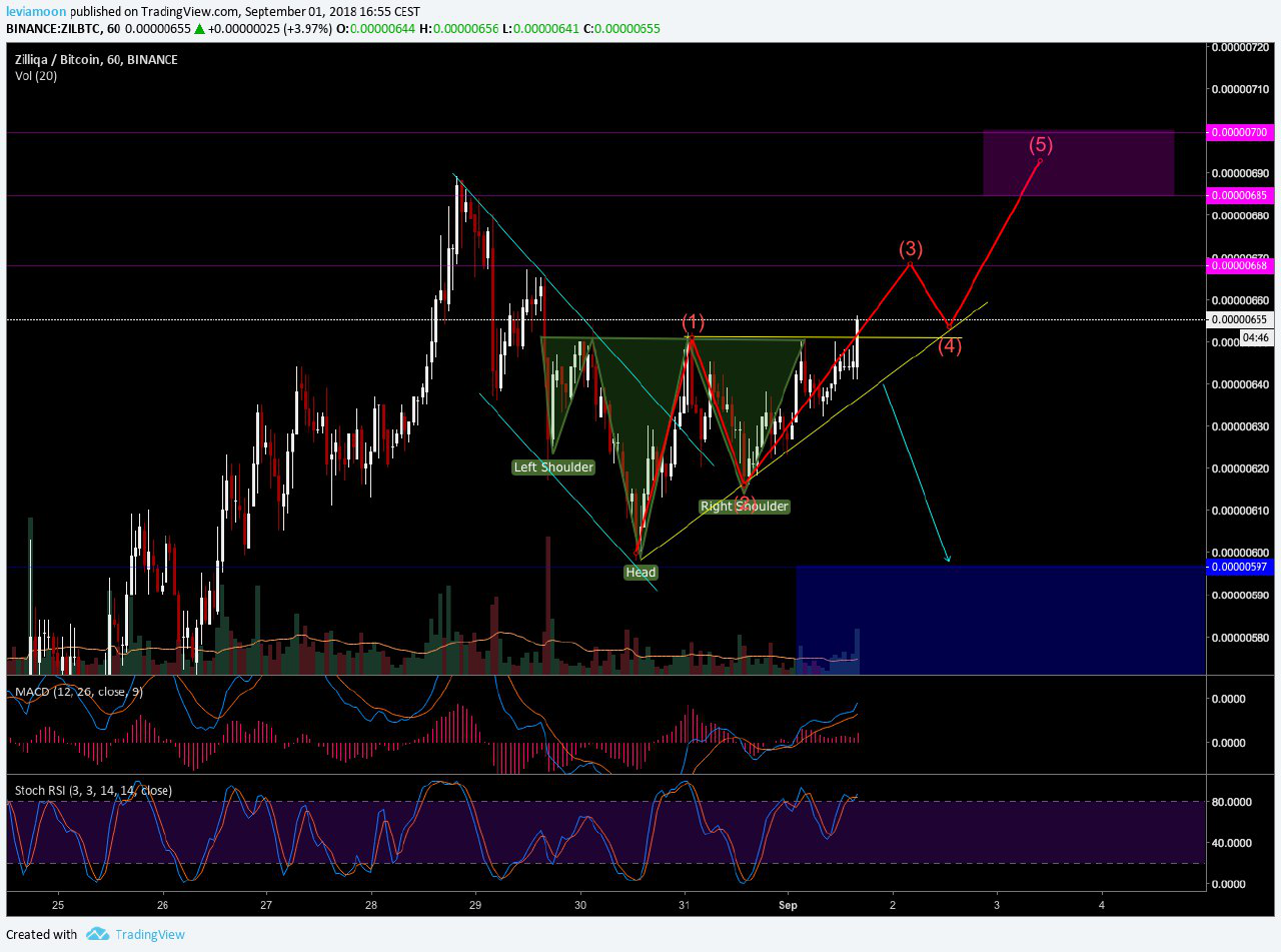 Volume is kicking in and breaking. Watch out for feakout, retest of the neckline and further up is better confirmation of move to EW3.
