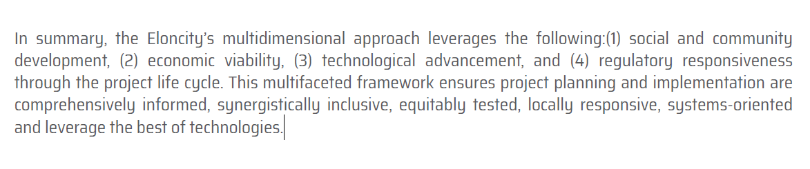You can get more info about the four pillars and their unique modalities of operations here (whitepaper: https://eloncity.io/download/whitepaper-20180717update.pdf or website: http://www.eloncity.io/). The Eloncity initiative shall target places where the utilization of fossil and nuclear sources of energy are at peak. Areas where there are problems with sources of electricity shall also be taken into consideration.