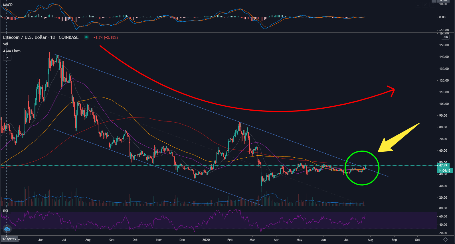 As we can see in the charts particularly in the color green circle, LTC made a mini break out from a really long downward channel.