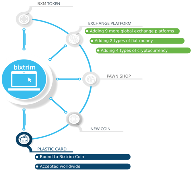 Crypto market connection to the retail market. Some cryptocurrency has not been connected to a credit or debit card used in the retail market but Bixtrim will launch a payment card that will allow users to do online shopping or retail purchases wherever they want. Payment cards will be linked to the user's cryptocurrency and most importantly for Bixtrim coins. The value of the coin that will be used in the payment will reflect its real-time value.