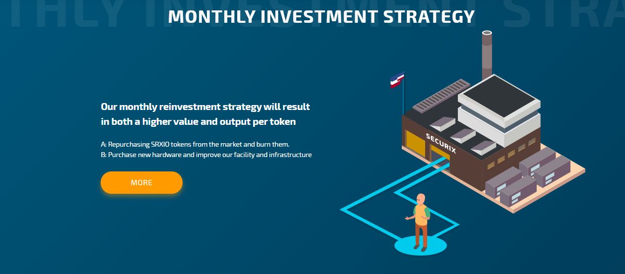 Nilai token Securix saat ini dicakup oleh ribuan mesin penambangan yang saat ini berjalan di fasilitas Belanda. Untuk setiap token yang terjual, 0,85 sen digunakan untuk pembelian perangkat keras baru, serta peningkatan infrastruktur listrik. Penting untuk dicatat bahwa setiap token hanya biaya 1USD.