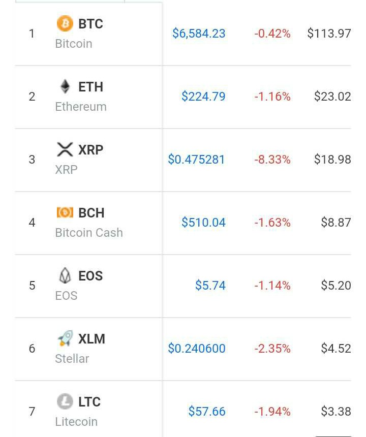 From a few months there is no big changes on crypto market. Today Bitcoin is at 6584$ which is almost same from a month. Etherium is at 224$, Xrp is at 0.47$ which was very low in previous month but this month some rise. Bitcoin Cash is 510$ that has no more change from a few months.