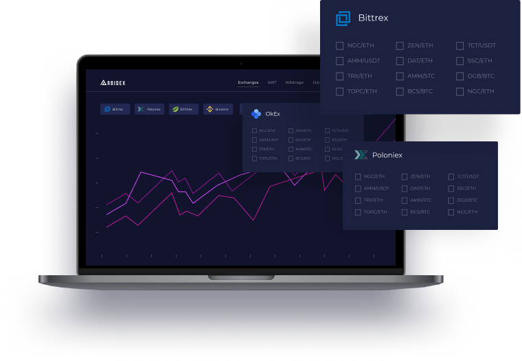 Arbidex is the first trading platform that aggregates liquidity from exchanges, A user has an opportunity to trade on these exchanges from a single account and single window. The system will allow users to exchange their cryptocurrency with a best possible exchange rate automatically and the total commission fee will be lower than any of those that exist at the moment.
