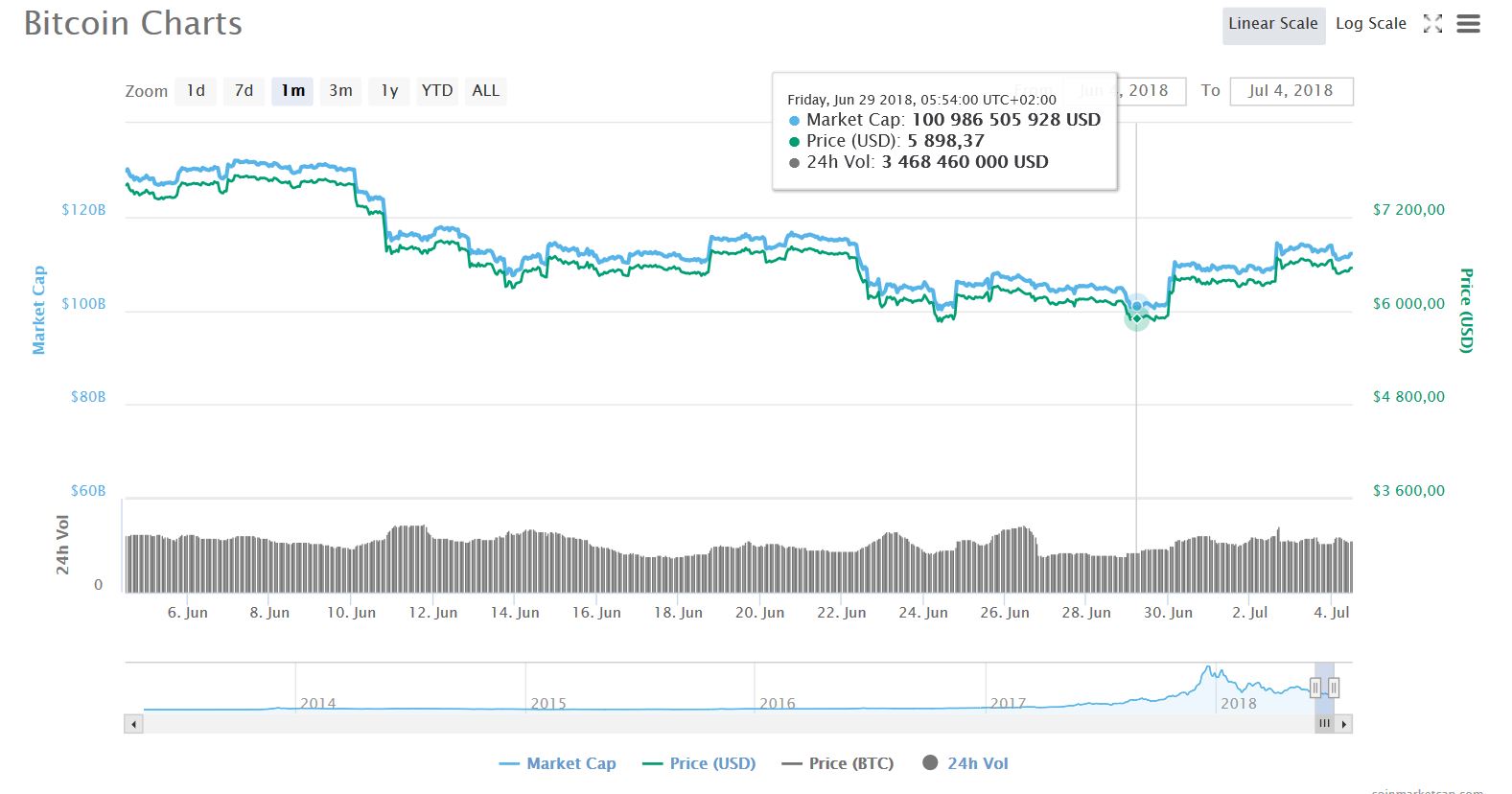 We can see that the price of Bitcoin has turned over the last week sine June 29th (bottom at 5.8k?).