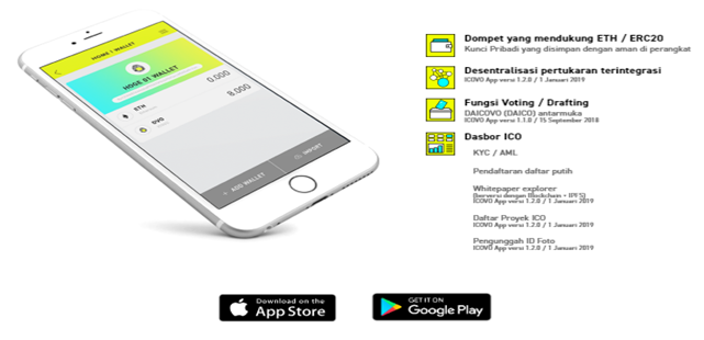 Icovo App has a one-stop solution for investors and project founders. The project founder does not need to develop it anymore. Icovo App also has dashboard features, KYC / AML, Whitelist registration, Whitepaper viewer, ICO project list integrated with Icovo Web and Photo ID uploaders. Furthermore it includes the Daicovo user interface and has an interface for Decentralized Exchange (DEX) where users can trade their tokens.