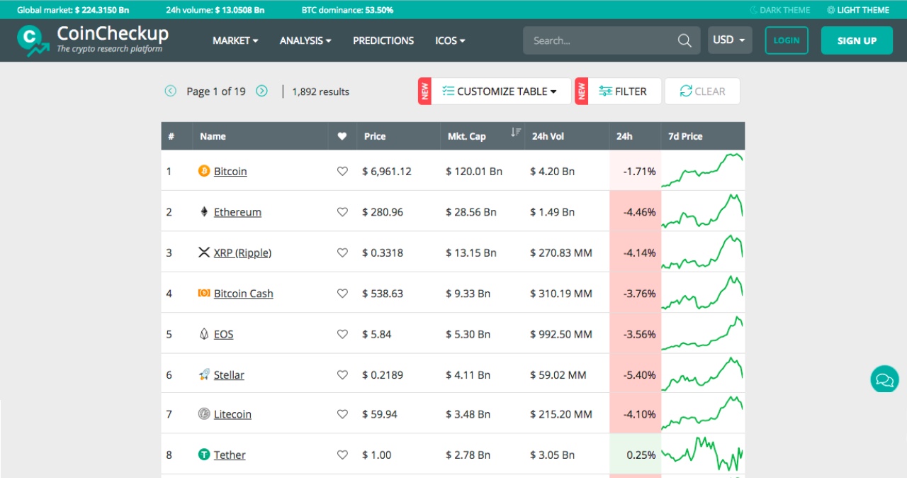 When CoinMarketCap offers graph-based analysis, CoinCheckup offers it in a table format. The information will be more or less the same, but you will find it in a table format.