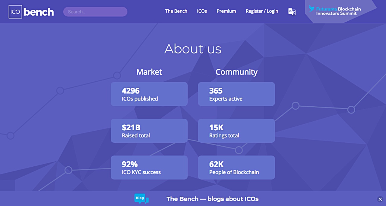 The ICObench website reviews Initial Coin Offerings, which is a new and innovative way for cryptocurrency startups to get funds.