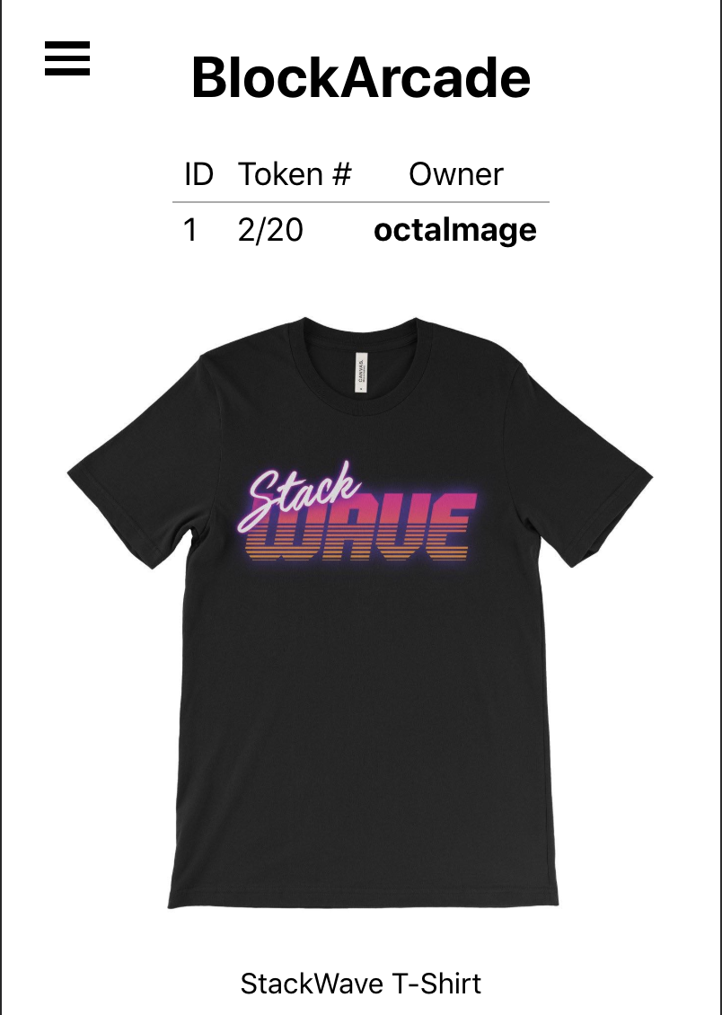 - We'll have you transfer the token to us, and in exchange you'll get a coupon code for our swag store. This coupon code will allow you to purchase the StackWave shirt for free!
