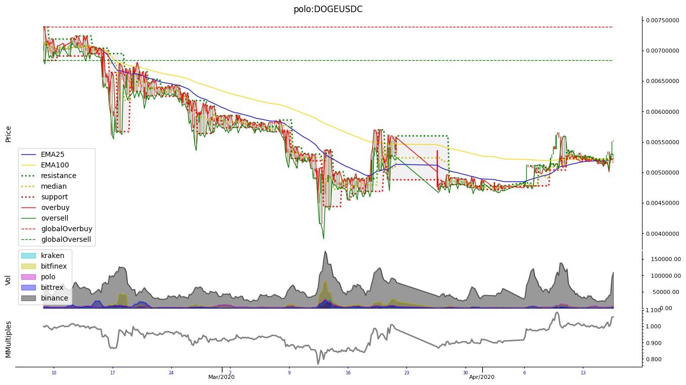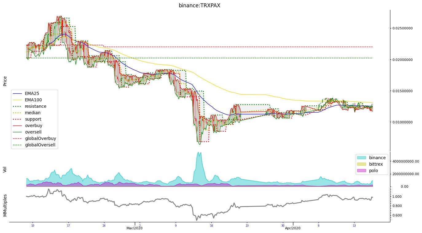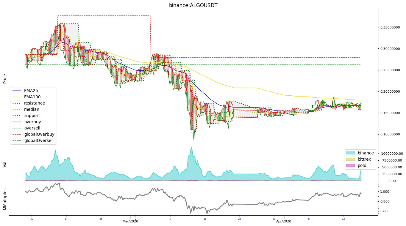 The cherry on the pie was a cool multi-exchange volume indicator. Also, calculated entries, stop-losses, take-profits, etc.