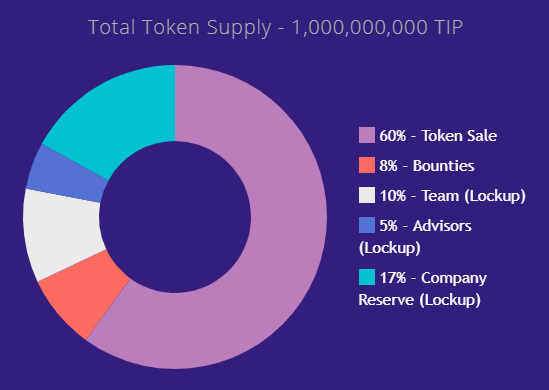 Tip will be holding a token sale as well as bounty programs to distribute our tokens to our community. The seed round will run for 15 days, followed by a 1-week presale, and 4-week crowdsale.JUL 2018 - WALLET AND MESSAGING APP PRIVATE BETA