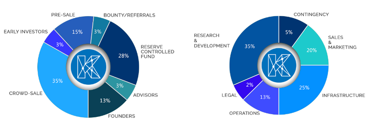 The following currencies will be accepted: ETH, BTC, BCH, LTC, DASHThe total number of chips is 2, 400, 000, 000 KKN