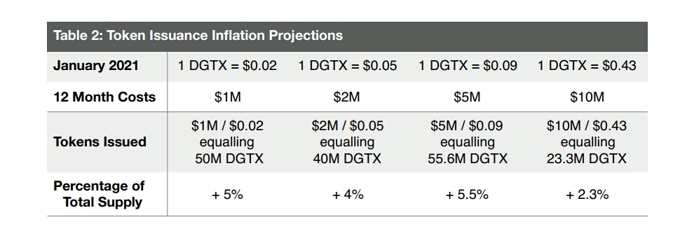 Initial demand for DGTX token will ensure that minting activities to be carried out after this period will fully be compensated for.