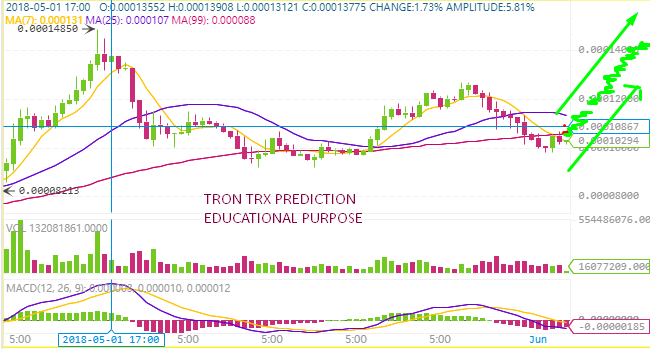 In the light of past few days and some previous data there is a fractal pattern found in Tron Trx Digital Currency as shown in the map got it from crypto currency digital and exchange and after i some changes for my prediction for educational purpose it is clearly shows that tron will pump up in the june and july and price will give u more n more but this is my prediction as per chart and final decision is yours because i am saying what i see in pattern so you have to hold the trx for june and july.