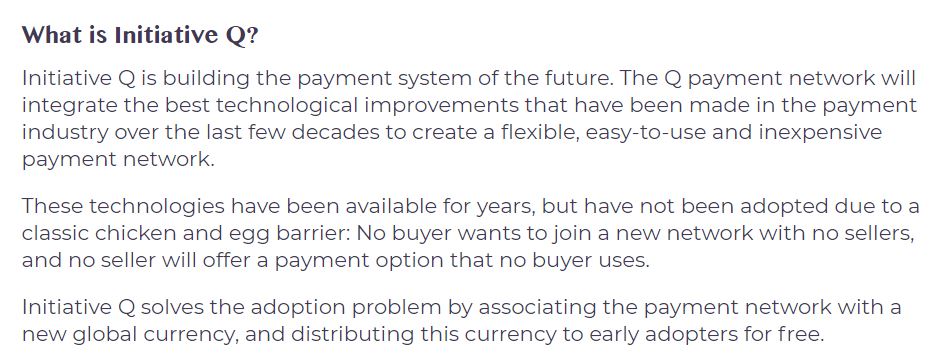 Well what about Initiative Q? Have you heard anything about it yet? They claim to be the payment system of the future: