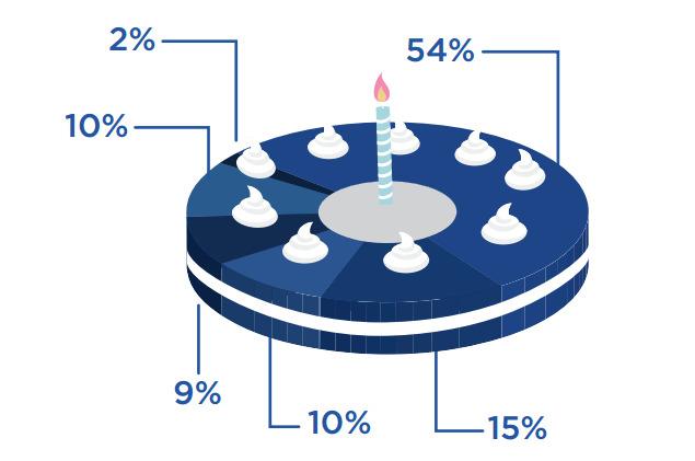 Distributed in ICO - 54 %