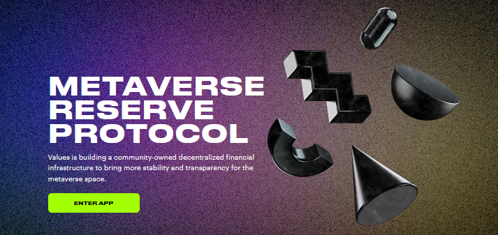 Values is Metaverse Reserve Protocol on Polygon Network based on the $VALUES token. Each $VALUES token is backed by a basket of assets (e.g. MAI, FRAX) in the Values treasury, giving it an intrinsic value that it cannot fall below. Values Protocol gives a possibility to back NFT tokens to the treasury liquidity. Values introduce economic and game-theoretic dynamics into the market through staking and bonding.