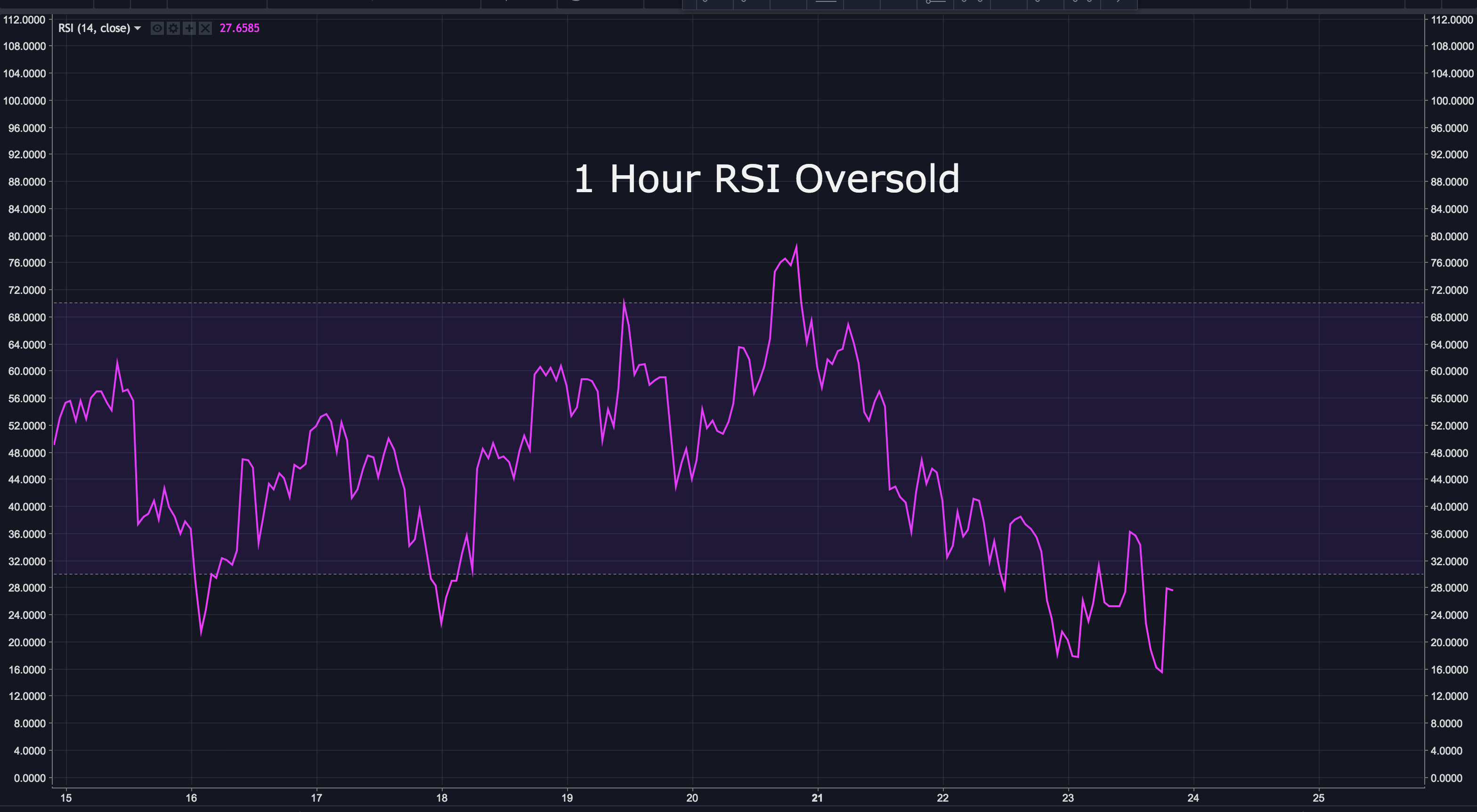 The 1 hour RSI is also fairly oversold. This suggests we may see a rise in price, at least temporarily.