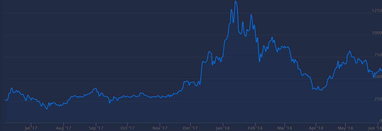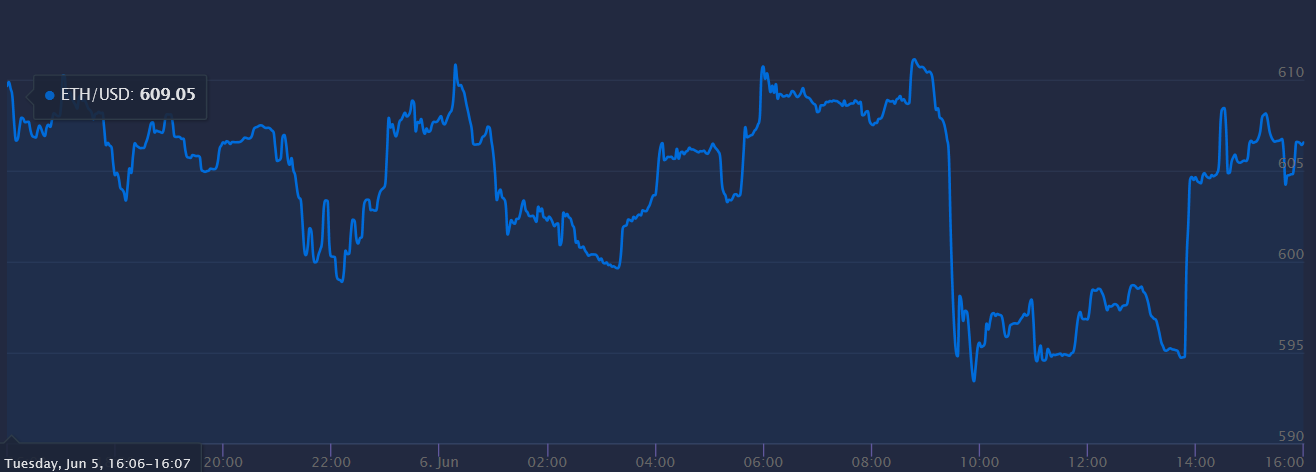 Although it did crash down to $11 per coin on June 16th, 2016, this did not last too long, and by March 2017, the price was back to the previous 18 dollars. In only one year, the price quickly rose up to $350 a coin in June 2017. As of 2:10 pm, June 6, 2018, the current Ethereum price is $604.53.