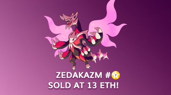 Another record of Mon sale was made in the same week. What a coincidence! Zedakazm #1 was sold at 13 ETH. Congratulations to both the previous owner for catching this Legendary and the new owner for owning the 2nd rarest Mon in game.