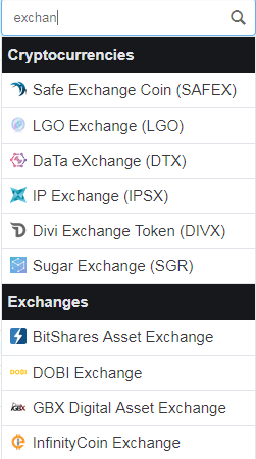 It is also possible to search the Exchanges, their values and currencies traded.