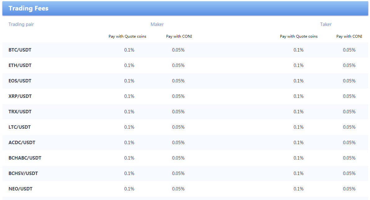 • General: 0.1% trading fee.