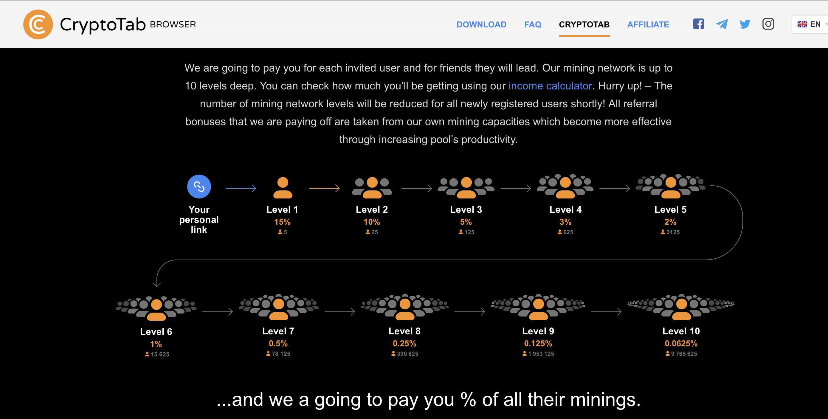 Now lets go to the earning side of the business, They have affiliate system that rewards to those people who spread the word about this project. Look the pic below.