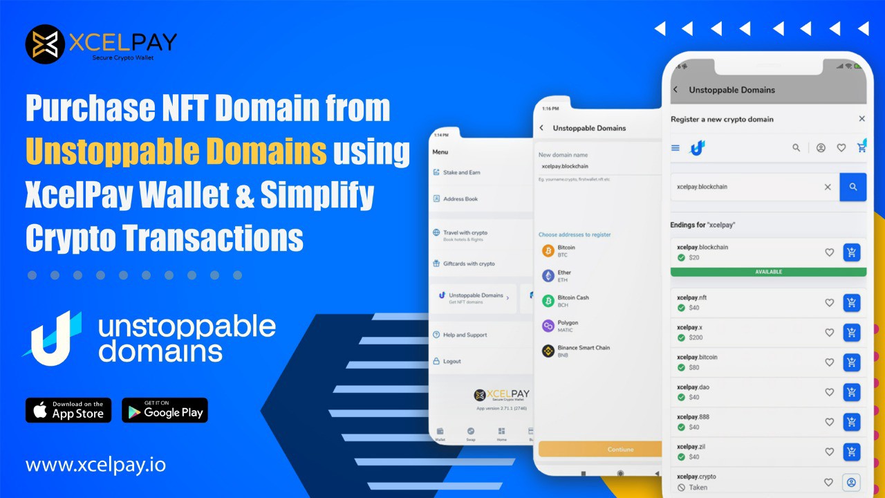 XcelPay Wallet (https://twitter.com/XcelPayWallet)users can use Unstoppable Domains to transfer over 275+ cryptos from one crypto wallet to another, using simple, easy-to-read NFT domain names. Unstoppable Domain assists crypto wallet users by replacing lengthy public addresses with readable domain names.