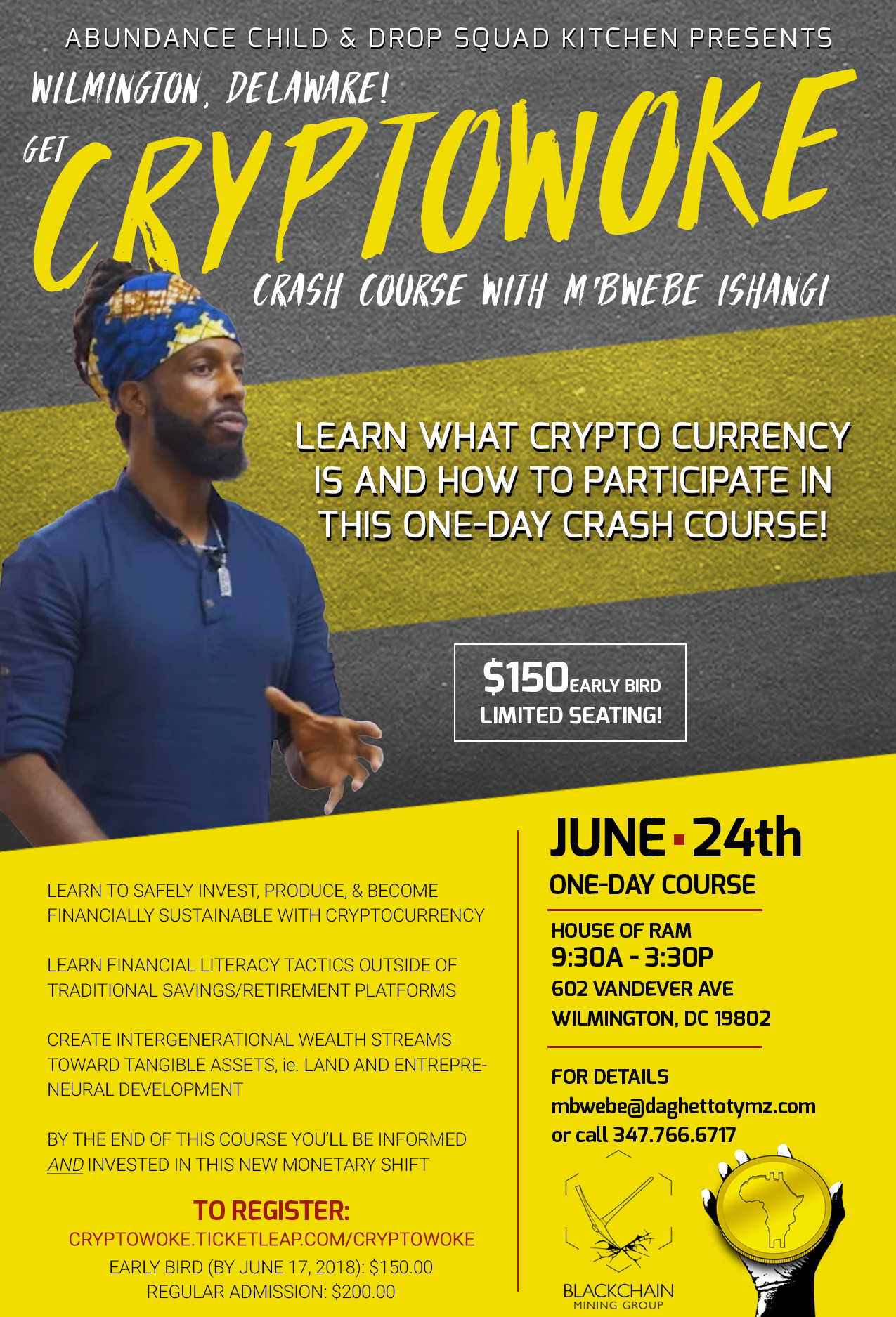 If you’re in the Deleware, Philly, NJ, DC/Maryland area Sunday, June 24, 2018, M’Bwebe Ishangi will be doing a one-day crash course about Cryptocurrency, Blockchain, and how this new form of money can be used to economically liberate ourselves from having to think the only way we can earn a living is by working for someone!