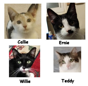 Apparently THIS crew has been viewing my computer history.... not long after I watched a video of a cat asking for more ear rubs and chin scritches by pulling his owner's hand gently back, these four started doing the same thing.