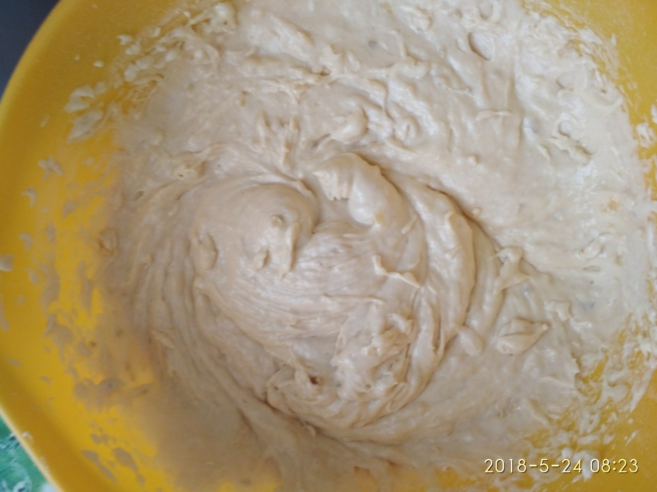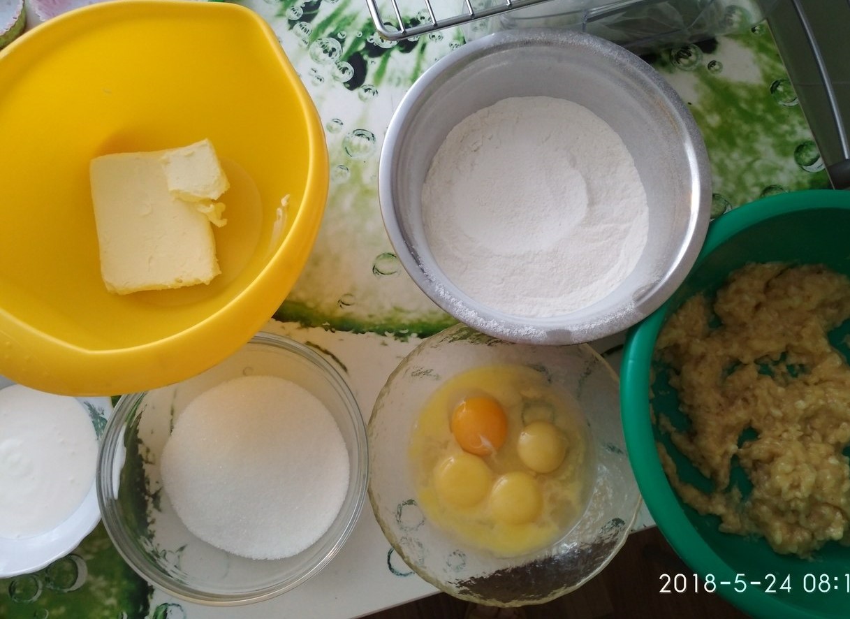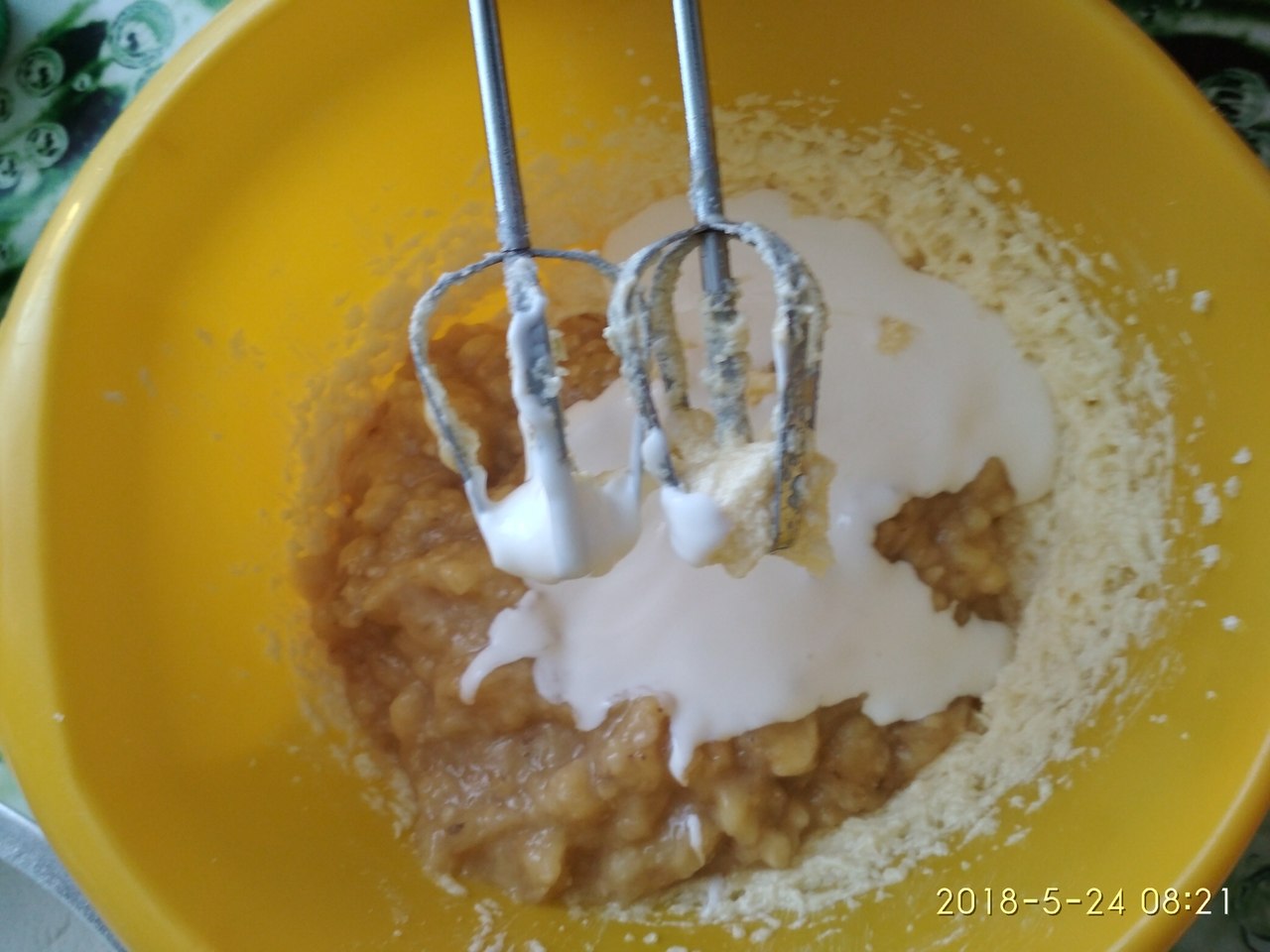 To connect the softened butter to sugar and vanilla sugar to mix to uniformity, then adding one egg well promeshivy. To add the ground bananas (puree) and sour cream to yaichno oil mix it is once again good to mix.