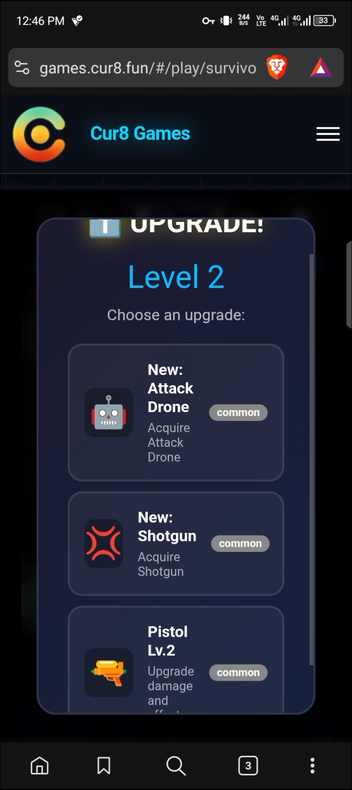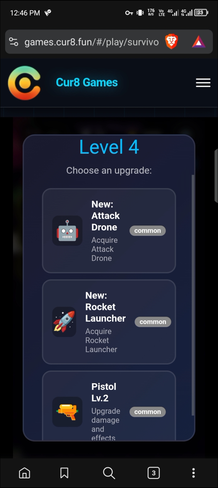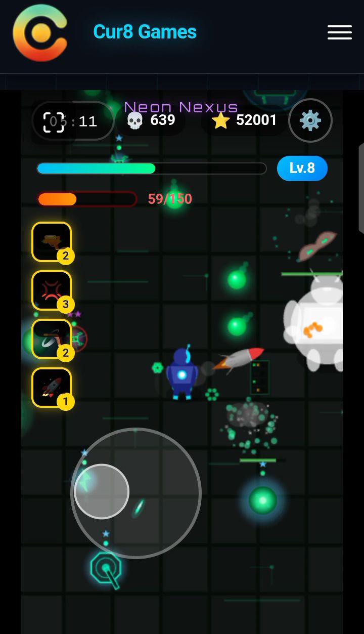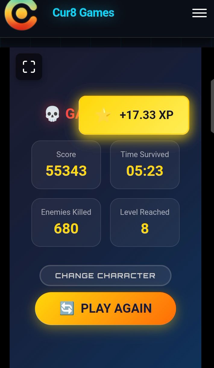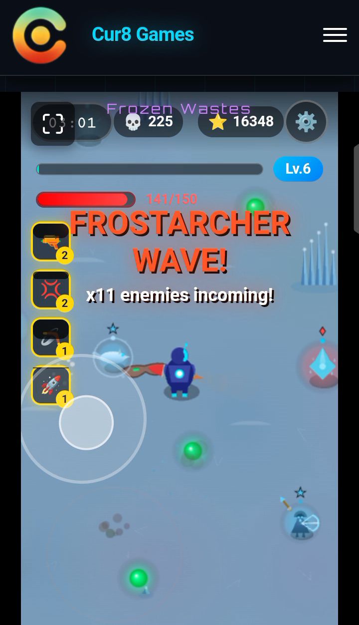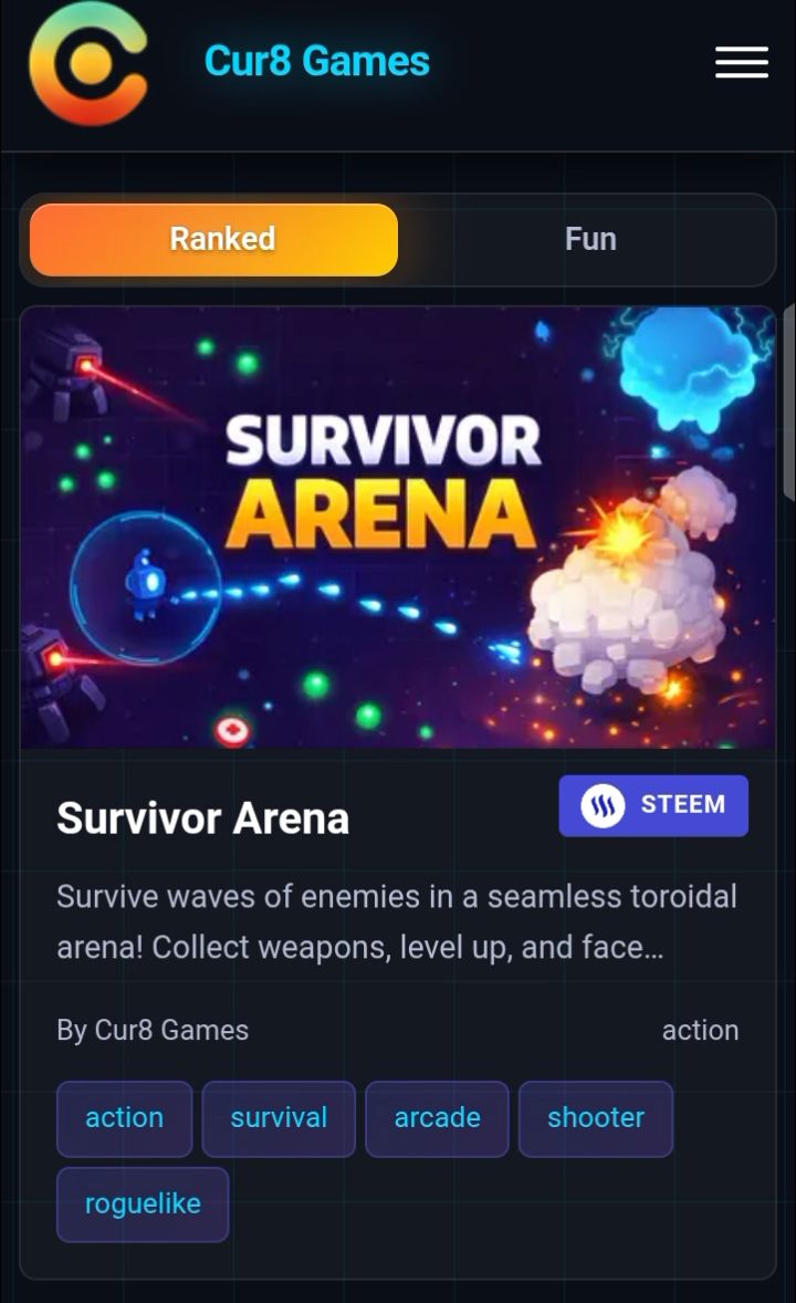 I scrolled through the game library, passing games like Space Shooter 2 and Blocky Road, and settled at Survivor Arena. I will be playing every single game on Cur8 this week