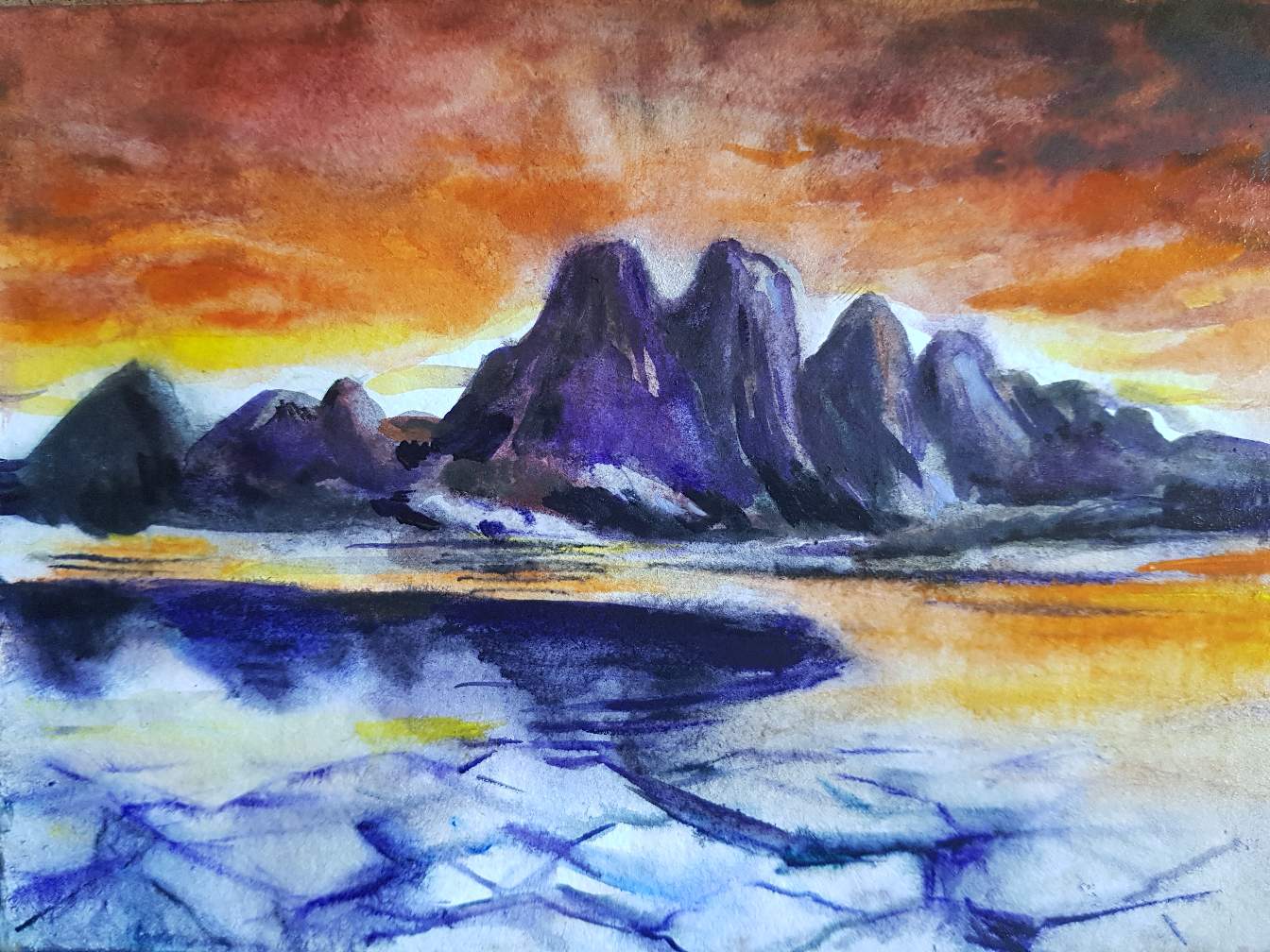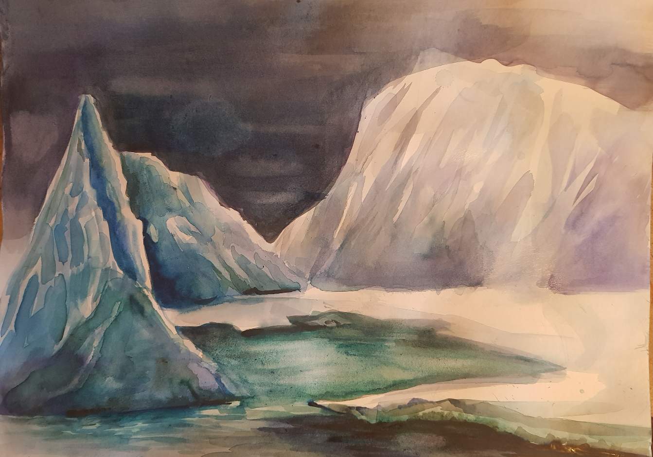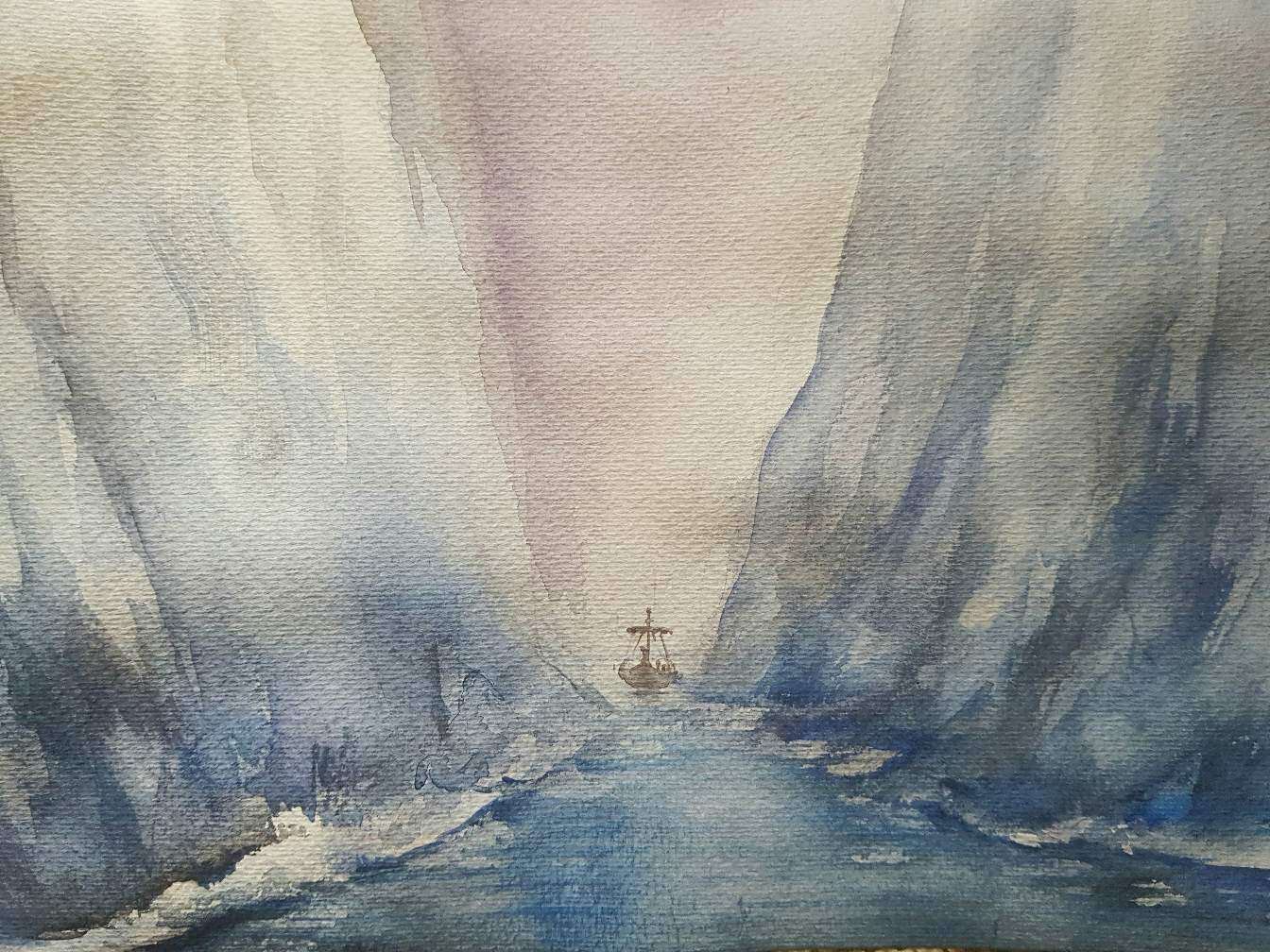 She doesn't usually watercolor. And her style is something else than what I asked of her. But still, she does a great job of helping me develop some visual content for our card game...which is about Vikings and exploration.