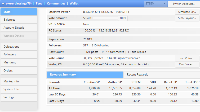 | Current voting CSI: | 6.6 ( 0.00 % self, 59 upvotes, 37 accounts, last 7d ) |