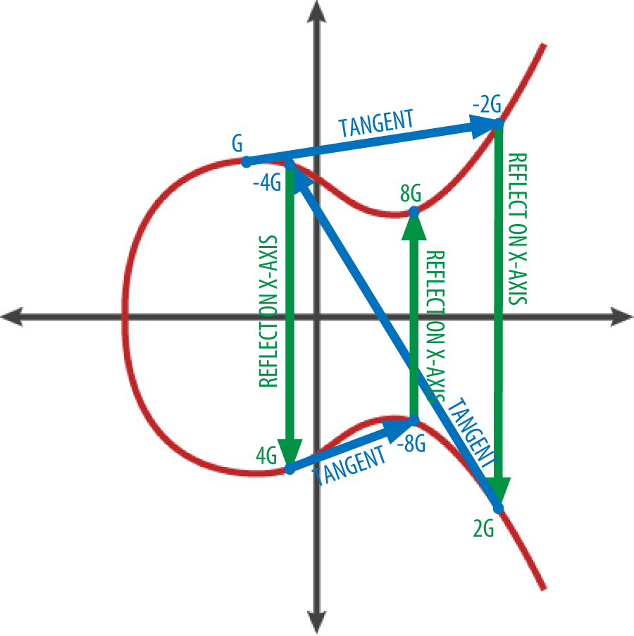The following figure shows on the curve G, 2 G, 4 G geometric operations.