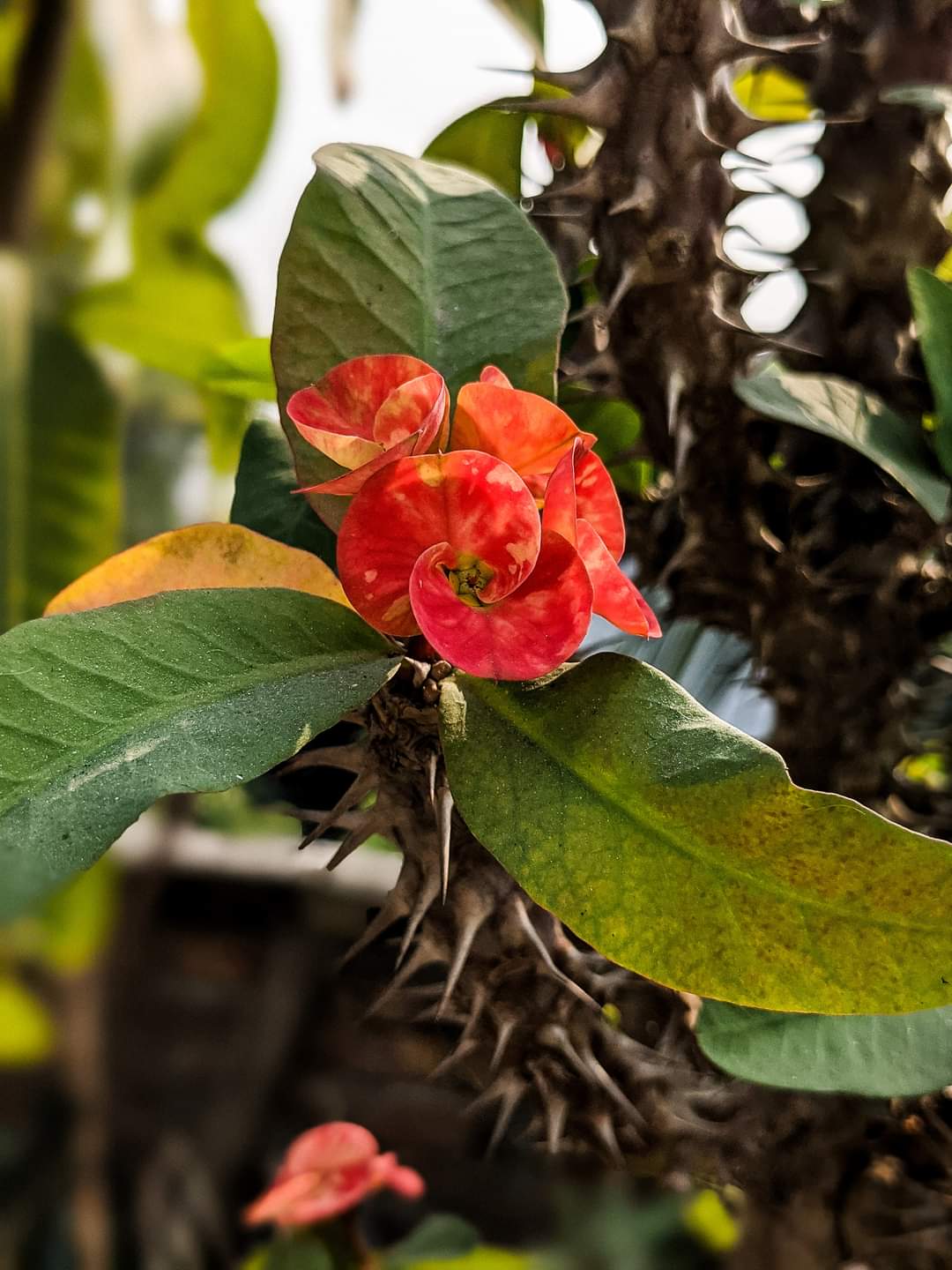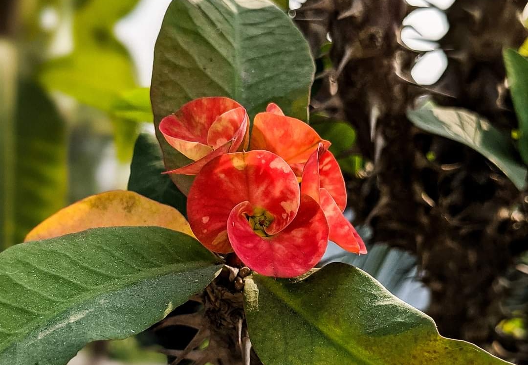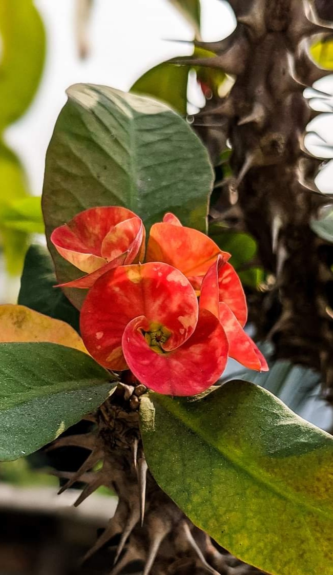 This is one of the most beautiful hardy flowers I have ever had. The flower is so powerful that it stands out from all the other flowers. In fact, this flower looks very beautiful from a distance and attracts everyone. Euphorbia mili, crown of thorns, Christ plant or Christ thorn, is a flowering plant in the Euphorbiaceae family native to Madagascar. The species name commemorates Baron Milius, once Governor of Reunion, who introduced the species to France in 1821..