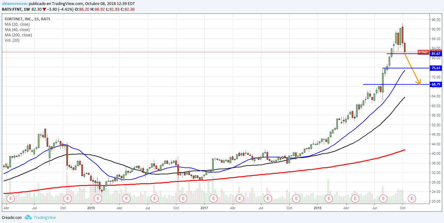 FORTINET INC. - Last downtrend continuation candle. - Ultima vela de continuacion de tendencia bajista.