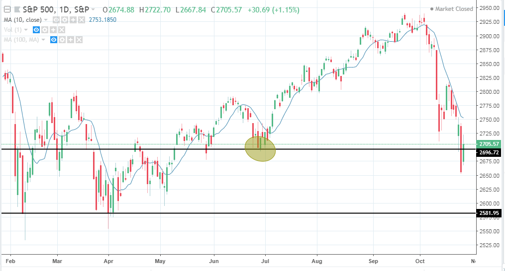 If you look back to my last post about the S&P 500 we talked about the 2700 area being a downside target and possible support. It represented a pivot low back in late June and sure enough became an area of action again.