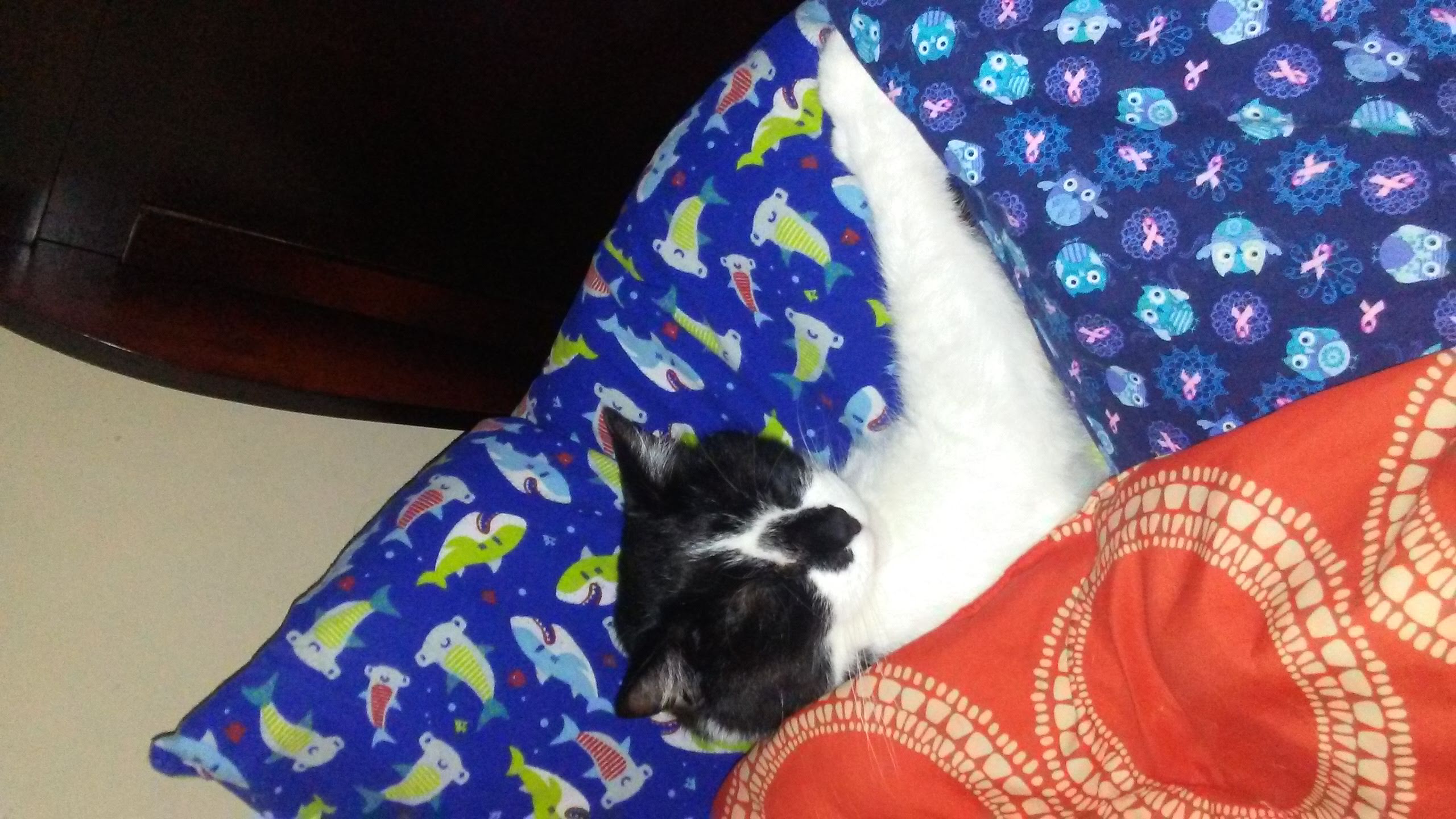 Caturday with Feenyfiberfrau (57)in #dailypetphotography • 6 years ago Feeny shows off his fuzzy underside. He also enjoys homemade pillowcases. #caturday