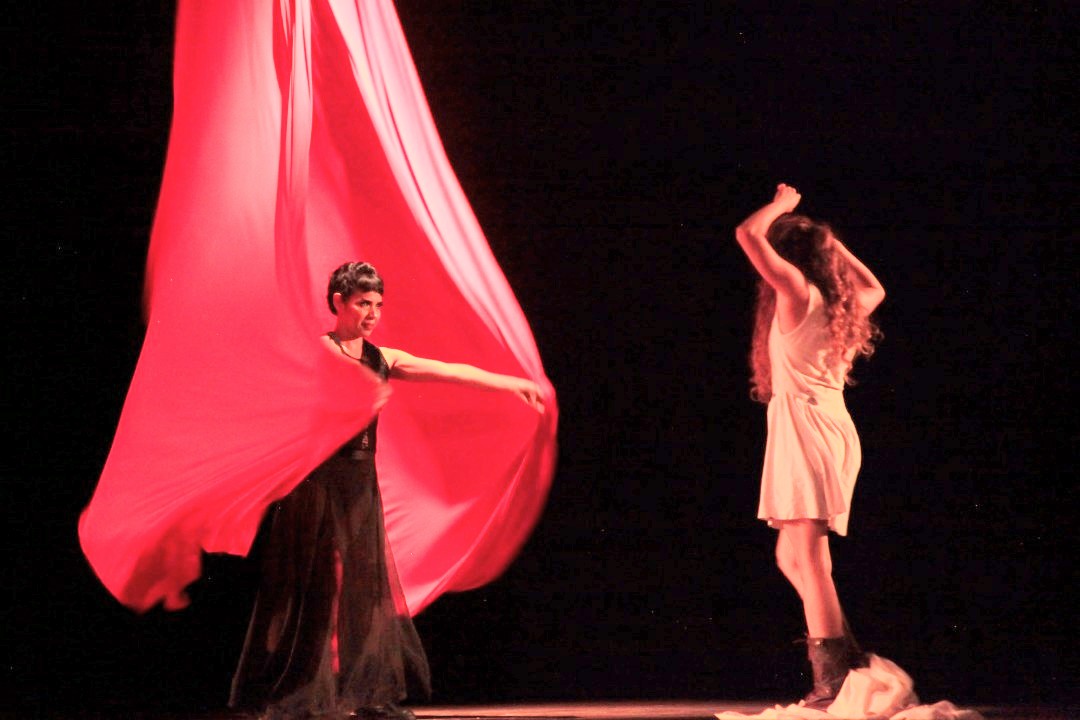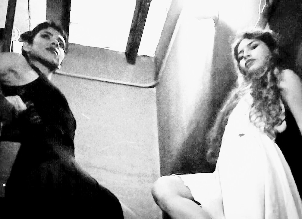Finalmente 10 minutos antes de dar sala estábamos haciendo una pasada rápida del performance para que Angy probara la tela y cuadrar corriendo las modificaciones.