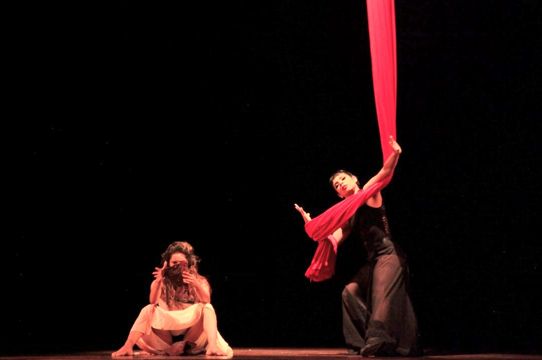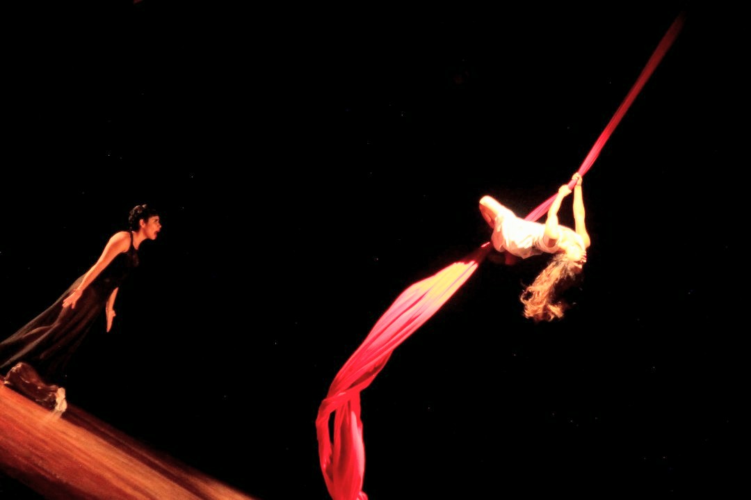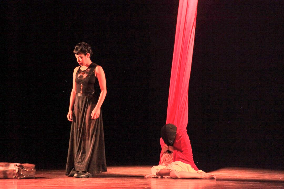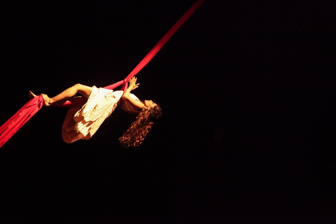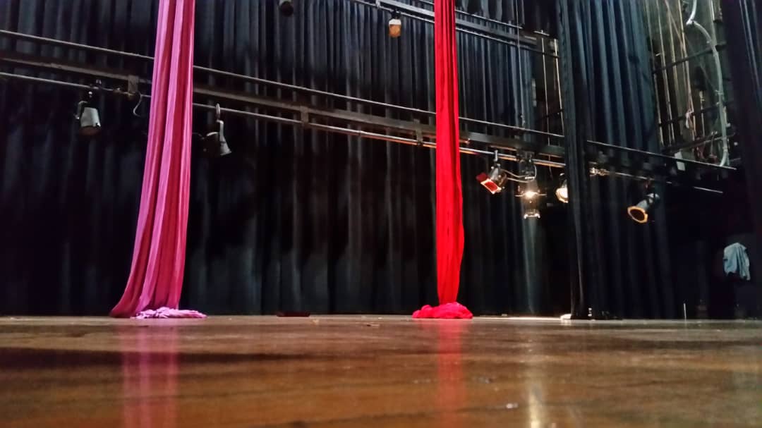 At the time there was a group of contemporary dance that was spacing, we began to see and plan how we were going to distribute ourselves in the space since everything had changed. The fabric was now going to be in the center because we shared it with another air group and it could also be used more freely there. This caused us an imbalance on the stage, so we musicians decided at the last moment to place ourselves in a corner so that the scenic unevenness was not so noticeable.