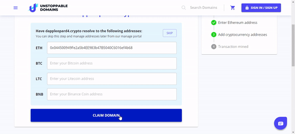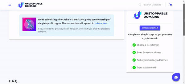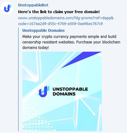 - Send a message to @unstoppabledomainsbot there.