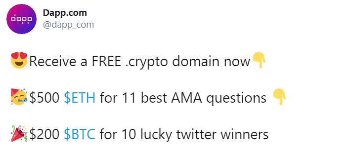 If you are not already aware, Dapp.com is running a Giveaway Campaign in collaboration with Unstoppable Domains.