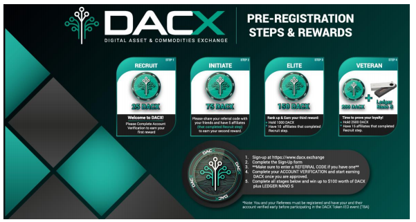 Первоначальные предложение биржи (IEO) на нашей платформе будут доступны только владельцам токенов DACX, которые зарегистрировались и подтвердили идентификацию своих учетных записей до начала IEO. Предложения будут оцениваться в токене DACX, и процент поставки IEO будет зарезервирован для держателей токенов DACX, в зависимости от их владения, в начале каждой фазы IEO