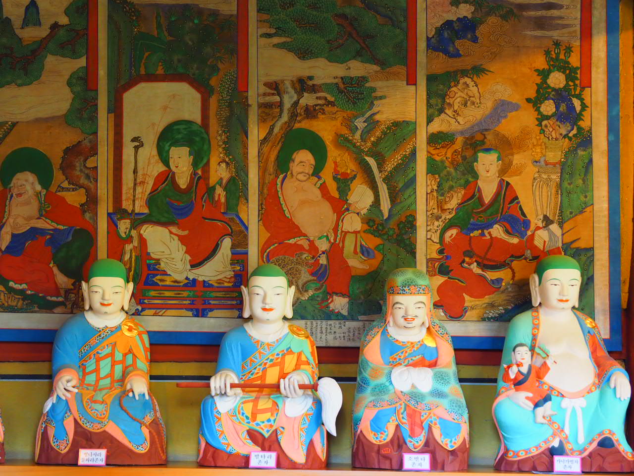 There were statues of Buddha and 16 disciples in the building.