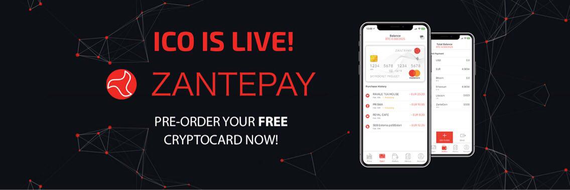 ZANTEPAY FREE debit card pre-order will be available shortly after ICO (after 15th July).
